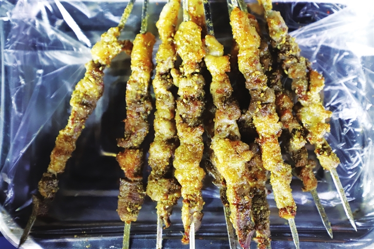 “老板,来十串羊肉串、一份羊排、一份小龙虾!”“好嘞!”在食客的吆喝声中,一份份烤好的美食放在托盘中陆续送上桌。被烤得色泽金黄的羊肉串,咬一口外焦里嫩,满嘴都是油渣的脆香。烤到微微焦黄的羊排,光是看着就已经食欲大增。细嫩的肉质,没有任何腥膻味,一大口下去软烂脱骨、满口冒汁。还有红艳鲜亮的小龙虾,饱蘸浓汁,先嗦一口鲜香的汤汁,再戴上一次性手套轻轻扯出虾肉,吃一口回味无穷。