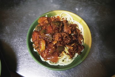 “老板,就中意你家这碗面,赶紧来个大碗。”家住桃南冶金厅宿舍的陈鑫是这家面店的“骨灰级”老粉,几乎是隔三岔五就会来咥一碗。手擀面打底,茄子小炒肉铺开,再配上一小碗炒透的土豆丝,一口面就上一口土豆丝,吃得不亦乐乎,尝到家的味道。“这里的面吃不腻,只要有朋友和客户来太原,必定会带他们来吃这家浇肉面。”陈鑫说,这碗面简单却不将就!爽滑筋道的面条混合着浓郁鲜香的卤料,从齿尖滑向喉咙,最后妥帖地落到胃里,大大的满足感,不仅勾起太原人的记忆,还惊艳着外地人的味蕾。
