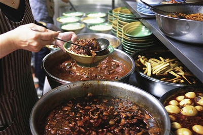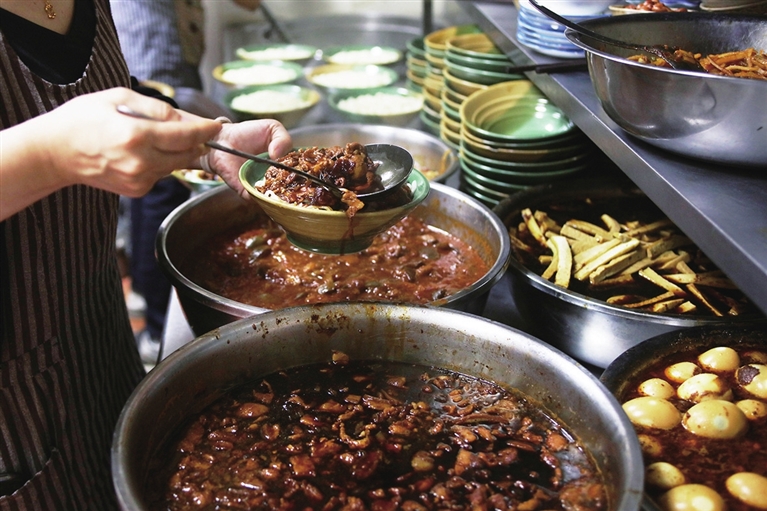 味道往往是人们记忆中比较深刻的部分,很多人正是因为一家餐厅的味道好吃,也就记住了这家餐厅。哪天想吃了,又会奔着这家餐厅的味道来。店里的菜单上,手擀面搭配茄子卤、小炒肉卤是特色;经典配菜就是土豆丝、油焖小辣椒和梅菜笋丝,再就上自家酱制、蒸制的卤猪蹄、肚丝、鸡爪、梅菜扣肉、小酥肉……明明是一碗面却能吃出多种不同滋味,也正是这些跳跃在舌尖的美味,让“家常味”经久不息地萦绕在众多回头客的生活中。