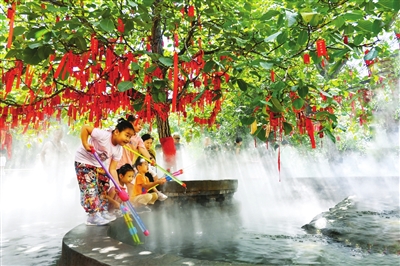 8月21日,孩子们在太山龙泉寺水池边嬉戏,享受假期快乐。 王昕 郭苑甫 摄影报道