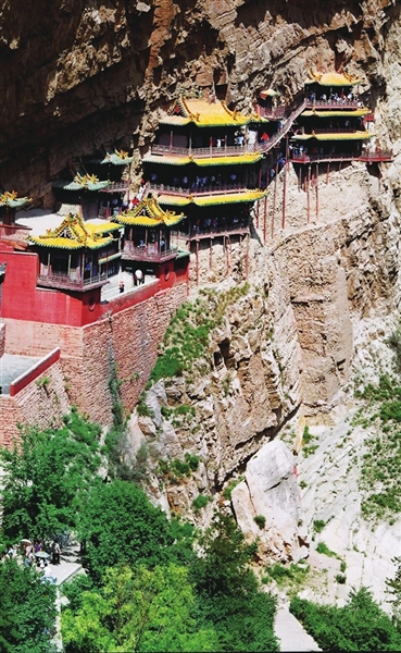 悬空寺建筑极具特色,以如临深渊的险峻而著称,素有“悬空寺,半天高,三根马尾空中吊”的俚语。