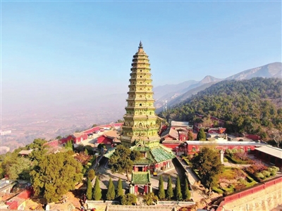 广胜寺始建于东汉,“中国第一琉璃塔”飞虹塔、稀世孤本《赵城金藏》、水神庙元代戏剧壁画并称为“广胜三绝”。