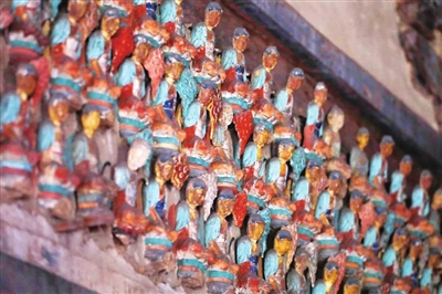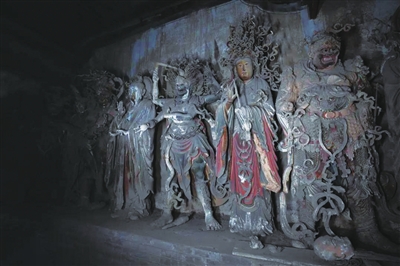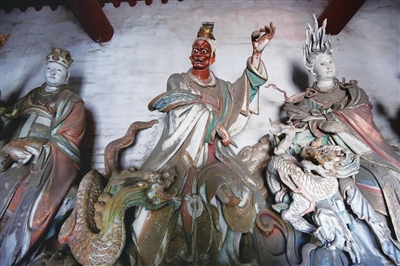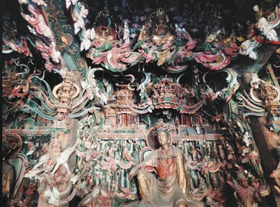 观音堂可谓满堂华彩。大小500余尊塑像神态各一,栩栩如生,是明代彩塑中的佳作。