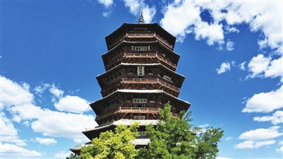 佛宫寺释迦塔,又称应县木塔,始建于辽清宁二年(1056年),是世界上现存最高大、最古老纯木结构楼阁式建筑。