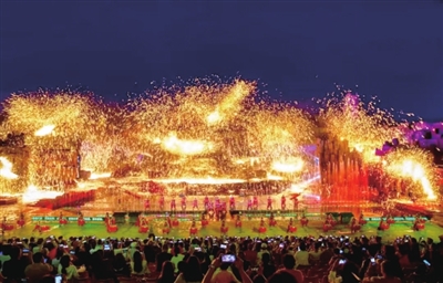 火炉中的铁块在烈火的炙烤下渐渐融化,化作一汪金黄色的铁水,闪烁着诱人的光芒。这不仅是金属的熔炼,更是匠人心血的凝聚,是他们对技艺的极致追求。突然,音乐到了高潮,几位匠人猛地舀起一勺铁水,用力向空中抛去,同时挥动另一只手中的铁棒,准确地击打在铁水上。瞬间,铁水从地面冲向高空,在头顶迅速炸裂开来,化作无数细小的火花,转瞬即逝,又似烟花般璀璨绽放,灿烂夺目。那一刻,时间仿佛凝固,所有的目光都被这绚烂的景象所吸引,无比震撼。