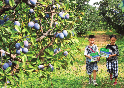 8月24日,尖草坪区向阳镇南翟村,大片西梅进入成熟采摘期,市民穿梭林间,体验采摘的乐趣。 邓寅明 摄