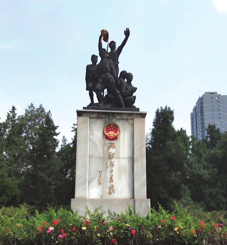 走出万字楼,沿着文瀛湖北岸,我们来到了革命烈士纪念塔。塔区的龙爪槐如伞遮荫,苍松翠柏错落有致,清香四溢。抬头一望,宽广的月台,洁白的塔身,鎏金的大字和青铜塑像,熠熠生辉,肃穆庄严。这里有工、农、兵、知识分子和妇女组成的铜像,塔身上有毛泽东同志手书的“死难烈士万岁”六个金黄色大字,塔体东侧有徐向前元帅题写的“浩壮高恒吕,泽惠过汾漳”,西侧为薄一波的题词“为中国人民解放事业而牺牲的烈士永垂不朽”。这时,我们看到一队年轻人站在塔前,神情庄重地正在举行仪式,全体致敬并默哀,表达了继承先烈遗志、永远跟党走的坚定意志和决心!