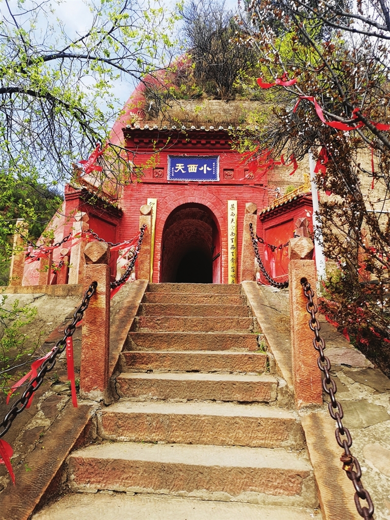 由韦驮殿背后的小路登上小西天最高处孤桐峰,登高远望,美丽的隰县县城尽收眼底。小西天依地势而建,观音阁就是凤凰的头,下院是凤背,两边的山谷是凤凰的翅膀,东边的摩云阁为凤尾,两个阁楼的窗户是一双眼睛,极目远眺,整个庙宇正像一只低头俯视的凤凰。构造如此精奇,我们对古人的智慧发出了由衷的感叹。