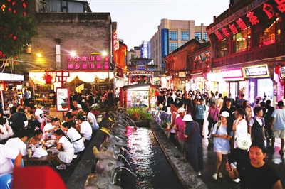 随着游戏《黑神话·悟空》大热,太原市旅游市场持续火爆。图为8月27日,在食品街游玩购物、品尝美食的游客络绎不绝。