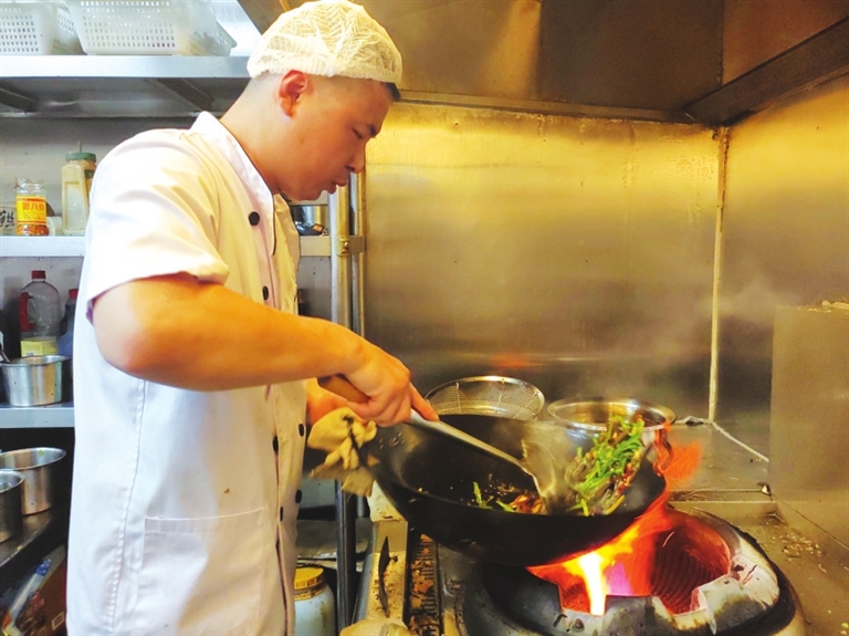 记者还注意到,饭堂的地面居然是少见的复合木地板。路萍解释,与周围的人们相伴18年,有的人上了年纪,但依然惦记着她家饭菜,时常光顾,就像回家。为保证老人行走安全,她决定在店里铺木地板。老顾客发现后,直夸路萍想得周全。