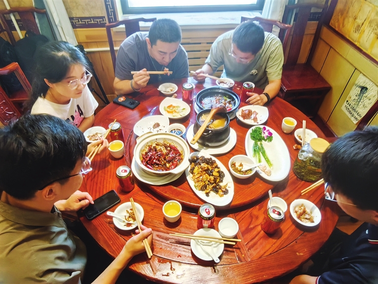 多年真情付出,王太饭堂在三桥街一带颇有名气。坡子街的赵先生是位“老太原”。对他而言,记忆中的味道只有在王太饭堂能找到。“那个土豆丝炒的,那么粗、那么黑、那么辣,和我妈妈之前做得一样样的。还有小炒肉,味道拿捏得正好,浇在面上,肉香和面香交织在一起,闻一下满嘴口水。”在国贸上班的刘先生,时常招待各地朋友,这里是定点接待饭店。环境很别致,菜品有特色,质量能保证,太原老味道,这是刘先生看中王太饭堂的原因。