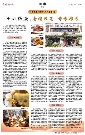 王太饭堂不仅是一家餐厅,还是太原形象的展示者。当别的饭店用各种轻音乐烘托用餐氛围时,路萍播放的是晋剧,她说:“这是发自内心的,我爱太原,我要宣传太原。”