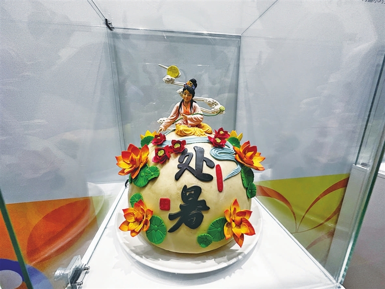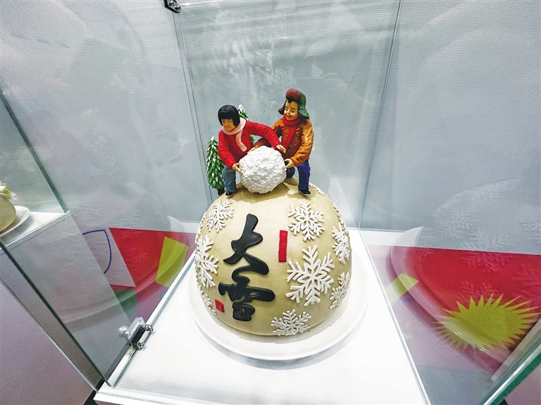 二十四节气花馍是杨刚带领团队历时40天精心制作而成的,作品将节气、农事和南北习俗等巧妙融合,生动再现了悠久的黄河流域农耕文明。“惊蛰”节气花馍上的黄鸭梨形态逼真,一旁燕子环绕;“小满”时节北方小麦已经灌浆,花馍上便插满饱满的绿色麦穗;“冬至”节气花馍上则是悄然绽放的寒梅和热气腾腾的饺子……“完全没想到,花馍也能做得这么美,这么有故事。”“师傅真是有巧思,老祖宗关于每个节气的元素都有。”一个个栩栩如生的面塑作品引得围观者纷纷拍照,不少家长还顺势给孩子讲起了二十四节气的知识。