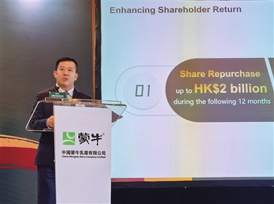 业绩公告的同时,蒙牛积极提升股东回报,宣布计划于未来12个月内进行总规模最高达20亿港元的股份回购,彰显公司对业务发展、未来盈利能力及长期稳健发展的坚定信心。