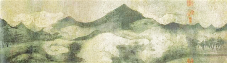 这幅《潇湘奇观图》是“米家山水”“米氏云山”的代表作,以长卷形式,用淋漓的水墨描绘了江南峰峦起伏、烟雨迷蒙、云雾缭绕、充满灵动的秀美景色,展现了苍茫雨雾中江南山水的特殊韵致。
