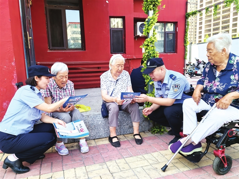 8月29日,迎泽派出所民警在青年路二社区向老年居民讲解网络诈骗、电话诈骗、养老诈骗等常见诈骗类型,提醒老人守好“钱袋子”,遇到可疑情况及时与子女沟通或拨打96110反诈热线求助,避免遭受经济损失。 辛欣 摄