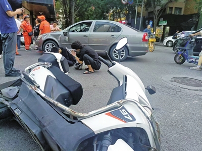 当日下午6时30分许,在云路街与小铁匠巷交叉路口,一辆汽车与一辆电动自行车相撞。汽车的车身受损严重,坐在电动自行车后座的男子头部、胳膊受伤。市民侯女士目睹了事故经过,她说:“汽车由西往东走,速度很快,途经路口未减速。电动自行车从北往南走,速度也很快。双方都没有仔细观察,来不及避让,撞在了一起。”