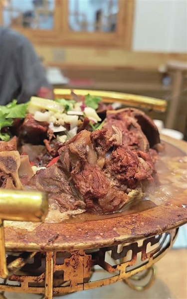 羊蝎子在铜锅中炖煮,撒上葱花、香菜,锅开肉熟,香飘四溢。正逢晚上饭点,梁女士带着女儿前来吃饭,她点的羊蝎子锅成了女儿的最爱,孩子用筷子吃不过瘾,直接用手拿起羊蝎子啃了起来,一口下去,骨肉完全剥离,“妈妈,真香!”孩子吃得停不下来。