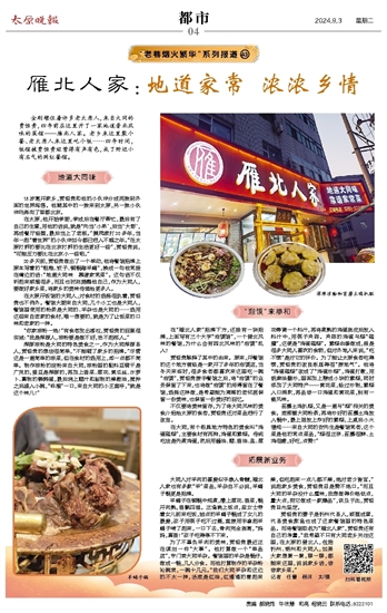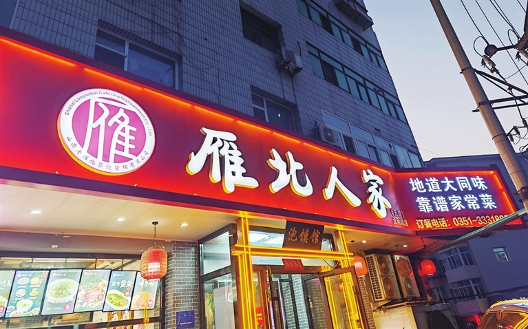 贾恒贵的妻子是忻州代县人,顺理成章,代县美食熬鱼也成了这家餐馆里的特色菜品。而将餐馆取名为“雁北人家”,贾恒贵还有自己的考量,“我希望不只有大同老乡关注这里,在太原的晋北人,包括忻州、朔州和大同人,如果大家想聚一聚,聊一聊,都能来这里,说说家乡话,尝尝家乡菜。”