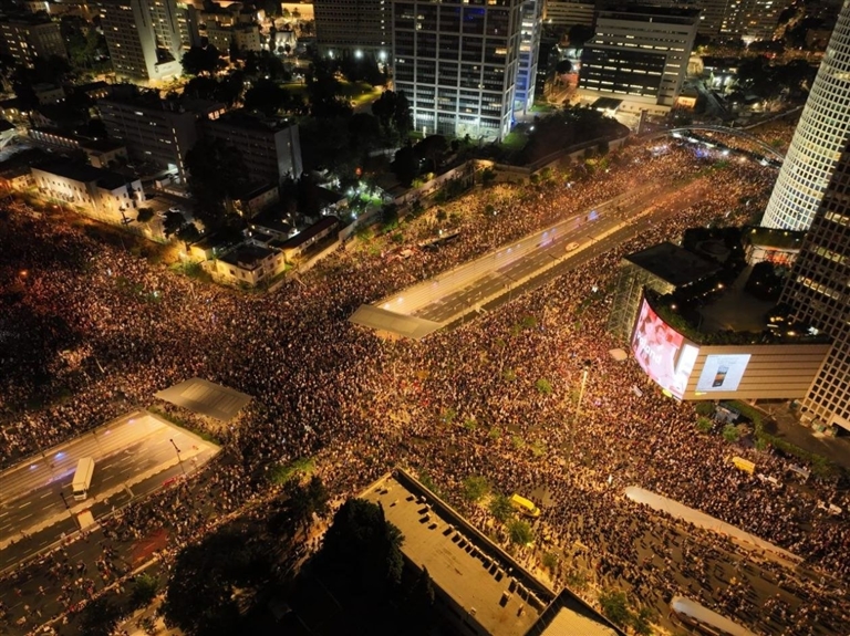 1日晚,在位于特拉维夫的以色列国防部附近及位于耶路撒冷的议会大楼一带,新华社记者看到示威现场人山人海,人们高举停火标语和被扣押人员的照片,怒喊“现在就达成协议!”。2日,示威者堵住位于耶路撒冷的以色列总理府门前十字路口,导致车辆无法通行。