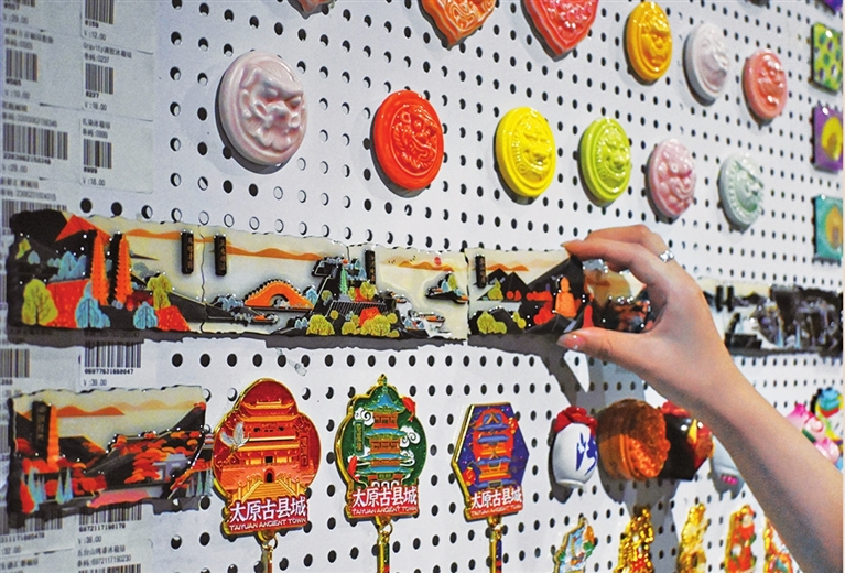 除了“古晋阳八景”系列之外,两款山西地图版的“家里有梁”和“家里有矿”的冰箱贴同样圈粉无数。“店里的文创产品近千种,很多年轻消费者都非常喜欢。”宋旭青说,今后,公司还将对更多本土的优秀传统文化进行创造性转化和创新型发展,开发更多的类似“古晋阳八景”的文创产品,不断地丰富“太原礼物袋”。也希望有意向的文创单位和企业参与进来,让更多的传统文化、非遗文化拥抱时尚,与时代同行,为太原文旅产业增色添彩。