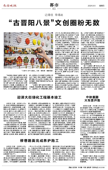 “版画在网上发布后,银行、公交、地铁等单位,以及本土特产企业,主动前来寻求合作,合作单位打算采用“古晋阳八景”版画图案,为现代化生活场景、食物包装注入传统文化内涵。”太原有礼文化创意产业有限公司品牌 经理宋旭青介绍,文创产品是景区二次消费的主力军,其重要性不言而喻。公司将“古晋阳八景”版画制成了明信片,因为兼容性强,还印制到手工皂盒、鼠标垫、抱枕上,而且还在持续兼容其他本土工艺品,形成特色鲜明的“太原礼物”。此外,还有冰箱贴、系列墨水、书签、笔记本、马克杯等多款文创产品,很受市场欢迎。