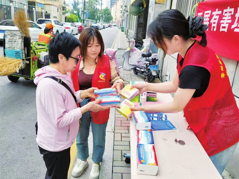活动现场,社区工作人员和志愿者为居民讲解有害垃圾的主要种类、投放打包要求、安全暂存处理要点等,让大家深入了解有害垃圾的危害及回收后的利用价值。不少居民拿来过期药品等有害垃圾,工作人员清点好数量,统计积分后,分别为每位参加活动的居民兑换相应的礼品。