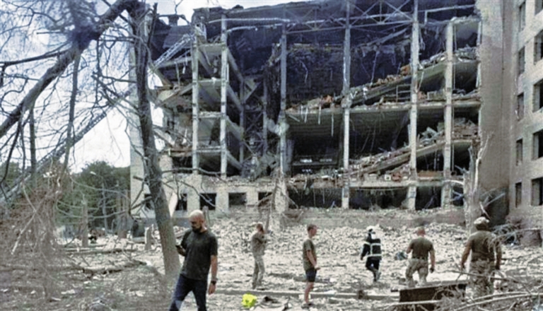 乌克兰国防部发言人3日告诉媒体,当天9时8分,乌方发布防空警报,遇袭的乌克兰军事通信学院学员正在室内上课,数分钟后爆炸声响起。导弹击中学院一栋主楼和附近一家医院,主楼部分楼体垮塌。