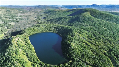 9月7日拍摄的阿尔山国家森林公园内的驼峰岭天池(无人机照片)。