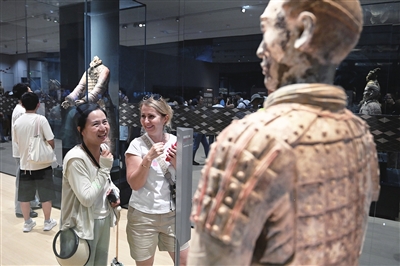 据秦始皇帝陵博物院陈列展览部副主任叶晔介绍,展览以秦始皇陵考古发掘成果为基础,分为秦始皇帝等八个单元,展示了秦始皇陵的总体布局、礼制建筑、陪葬坑、陪葬墓及出土文物等,以及这些遗址和文物所反映出来的秦代政治、经济、军事、艺术、社会生产、娱乐生活、精神思想等方面的丰富内涵。
