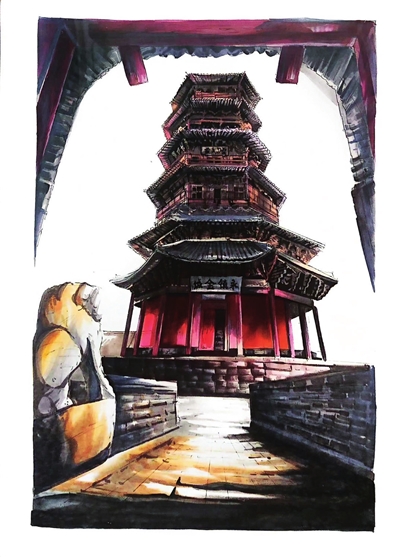 应县木塔 王 艺 绘