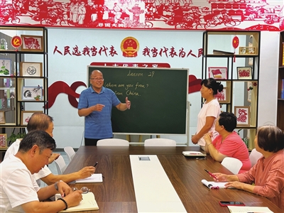 每周六下午3时到5时,滨体社区的“英语角”都会聚集很多居民。大家跟着专业老师,学语法、练口语。