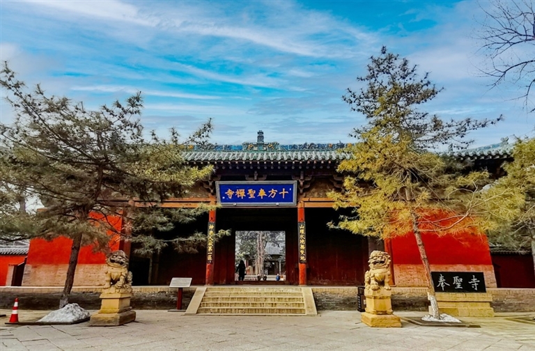 尉迟恭将军十分敬重智满,待之以师。他觉得自己征战一生,杀生太重,“惕然心悔”,有心向佛,就去请教智满。智满说:“将军悔心,天启之也。”尉迟恭又问:“若斋僧建刹如何?”智满答:“一念善心生,获福无涯矣。”尉迟恭听后顿首下拜,就把自己在晋祠的别墅捐献给佛门。智满把它改造成一座宏大的佛寺。唐高祖李渊赐额“十方奉圣禅寺”。智满也就成了这座名刹的开山禅师。
