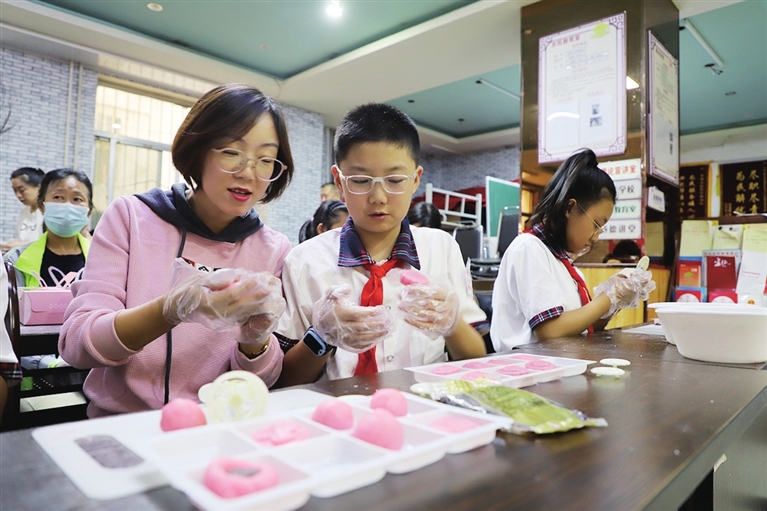 9月11日,迎泽区第二实验小学联合文庙街道幸福社区开展中秋主题活动。师生与社区居民一起打月饼,感受传统节日魅力。 张昊宇 智慧 摄影报道