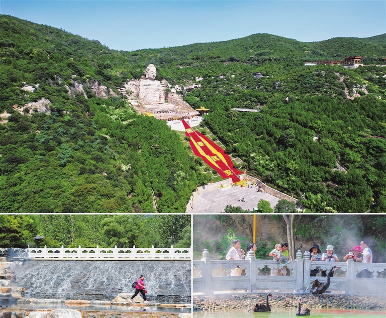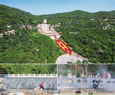 9月13日,经过4个月提质改造的蒙山景区焕然一新,正式开园迎客。此次改造在环境优化、设施配套、业态产品和管理服务等方面实现全面升级,更好地服务游客。上图为焕然一新的礼佛台;左下图为游客在新建成的叠水瀑布游玩;右下图为游客在蒙山晓月湖水旁观赏水禽嬉戏。