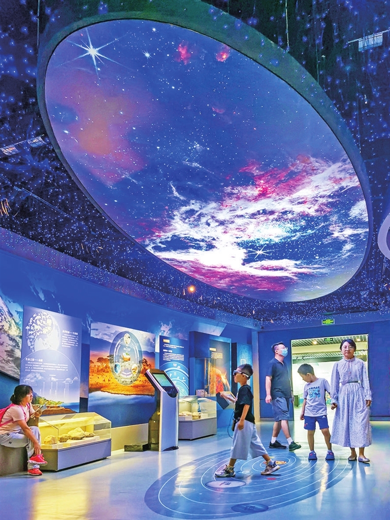9月17日,山西自然博物馆内,一名小游客通过AR眼镜,穿越时空,感受历史。随着博物馆游升温,我市博物馆应用新科技,提升服务品质,受到游客欢迎。 刘敏 平原 摄影报道