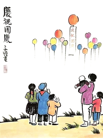 庆祝国庆(中国画) 丰子恺 作于1959年