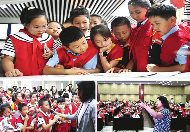 9月21日,百余名学生带着憧憬与好奇,走进太原日报社参观实践,与记者、编辑面对面交流,了解新闻生产流程,聆听写作讲座,感受新闻魅力。当日,太原晚报阳光天使小记者迎泽区大南关小学校工作站、太原晚报阳光天使小记者迎泽区建设路小学校工作站挂牌成立。上图为小记者在报社参观,左下图为小记者互动提问,右下图为小记者聆听讲座。