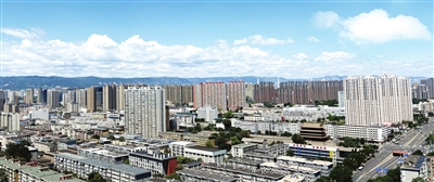 9月23日,我市天气持续晴好,“太原蓝”抬头可见,市民的“蓝天幸福感”不断提升。图为拱极门周边城市美景。