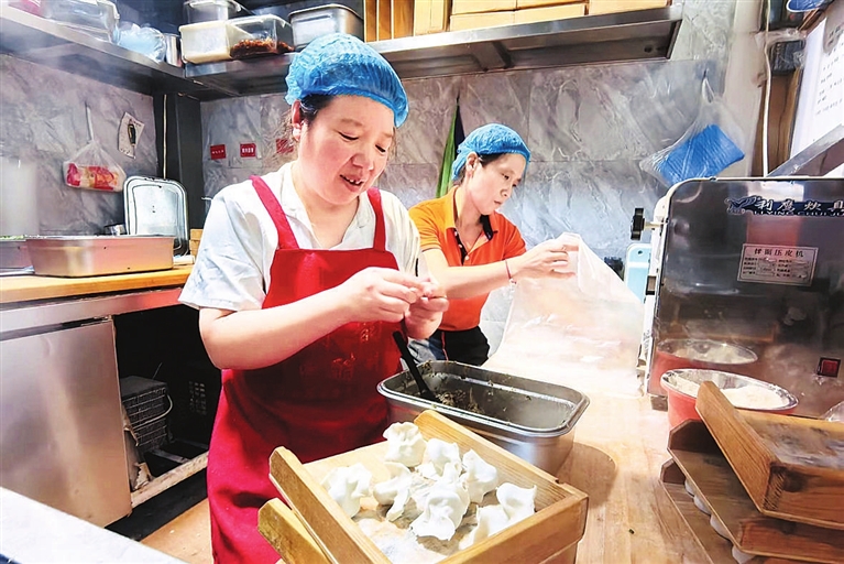 带着女儿来吃午饭的王女士表示:“没时间做饭的时候,不时会带孩子来这里吃,每次都会点两三个特色菜和一份饺子。他家的饺子手工制作、皮薄馅足,让人吃得放心。”