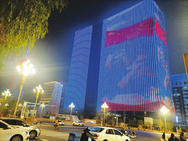 夜幕降临,街边的高楼亮起主题灯光秀,科技感与时尚感交融,让人们在光影变化中感受到这座城市的活力,彰显出祖国的繁荣昌盛。