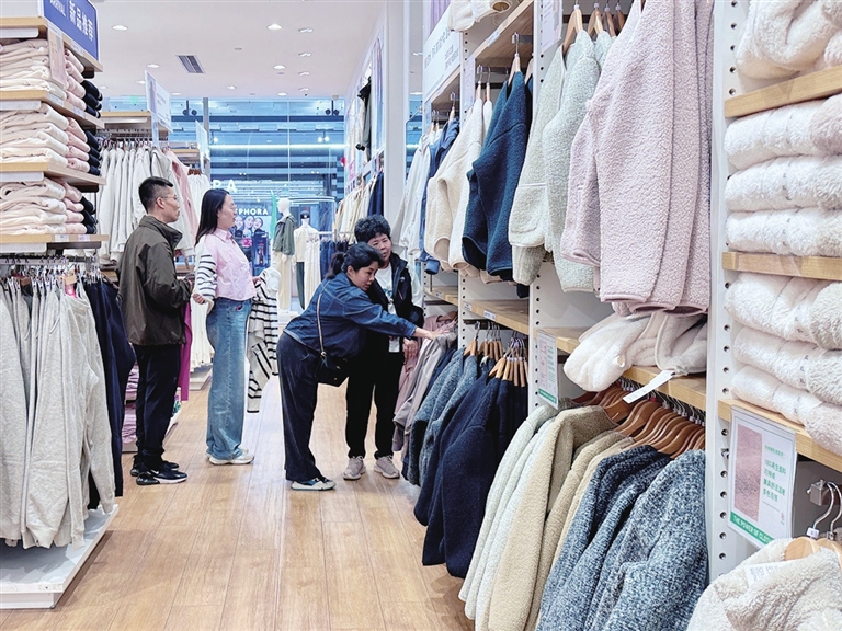 9月29日,我市迎来大雨天气,气温骤降,市民在商场选购秋装。当日13时许,市气象台发布寒潮蓝色预警,预计未来48小时内,最低气温将下降8℃。市民出行应注意增添衣物。 王韵菲 摄