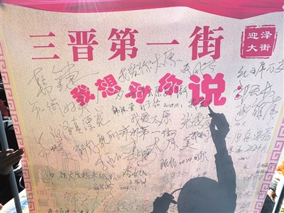 “祝我的家乡越来越好,走向世界”,19岁的田梓涵是山西医科大学的学生,10月3日,她和男朋友一起排队领到了《太原晚报·三晋第一街》专刊后,在留言板上写下了自己的祝福,并请发行人员为他们在合影框中留影。田梓涵说:“正好赶上国庆节,太原日报社搞的专刊赠阅活动真是诚意满满,用这种特殊方式宣传太原、展示城市形象,不仅唤起了我们本地人的城市记忆,也给外地游客留下了太原人热情好客、太原这座城市底蕴深厚的印象。这份专刊给‘泼天的流量’再加分!”
