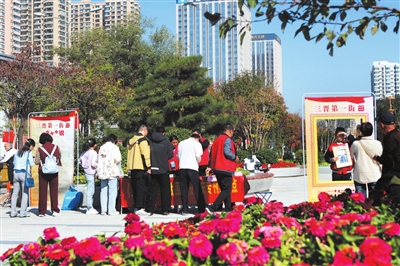 10月1日上午11时,在大南门专刊赠阅现场,太原日报社社长边素庭出现在人群中,就《太原晚报·三晋第一街》专刊和《太原日报》《太原晚报》的办报方针、办报思路、传播效果等问题和广大读者展开热烈交流。大家争先恐后地说着自己的看法、建议和意见。78岁的张锦绣是两报的老读者。老人一面夸赞报纸办得好,亲戚朋友、街坊邻里都爱看,一面从自己阅读的角度提出一些建议。