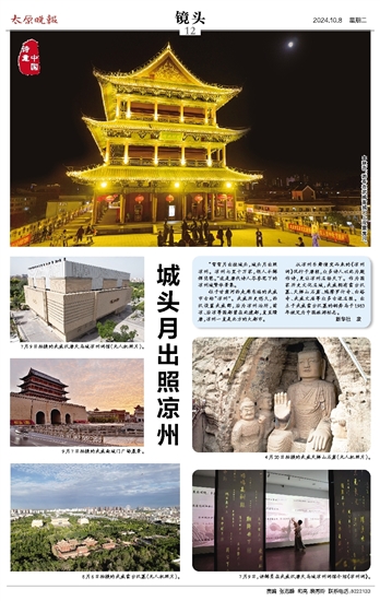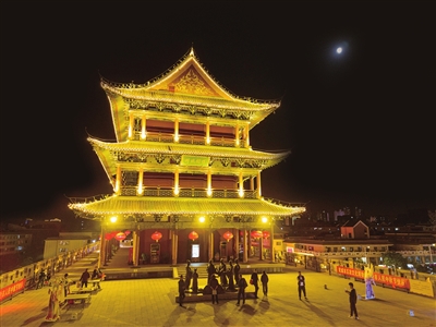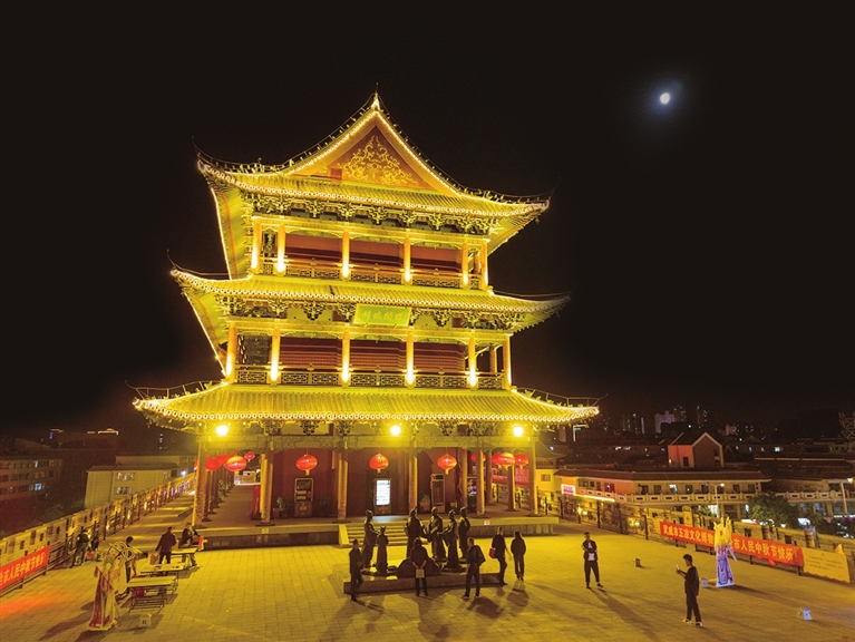 中秋夜,游客在武威南城门上观景赏月。