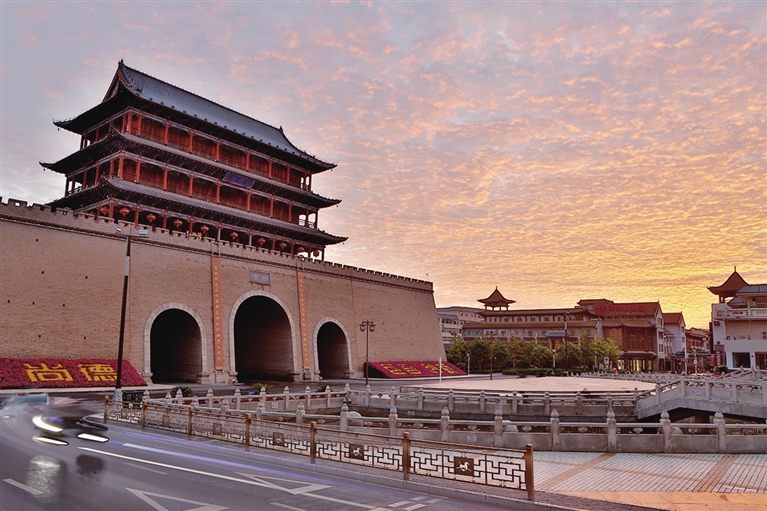 9月7日拍摄的武威南城门广场晨景。