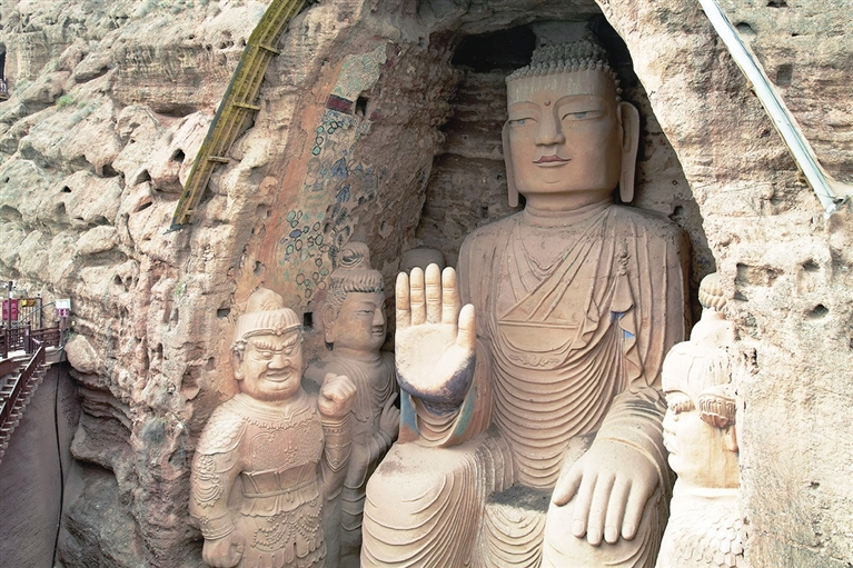 4月20日拍摄的武威天梯山石窟(无人机照片)。