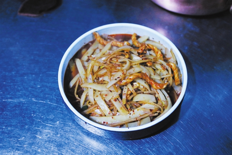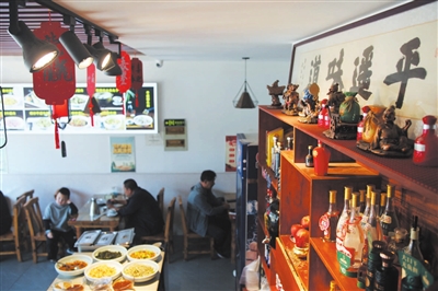 恪守传统技法,再加上好口碑,店里生意是越来越好。“平遥水土特殊,尤其水源自带微咸,做出来的牛肉、碗托别具特色,所以为了确保店里菜品能呈现出家乡传统滋味,我们坚持从平遥当地采购原料。”邢海平介绍说,店里原料都是他一次次回老家选定的。每天上午9时前,会托运到太原。他9时去提货,然后到店和面、备菜,一直要忙到晚上10时。“苦是苦点,但保持老味儿,靠手艺养家,心里踏实!”邢海平务实本分,一步一个脚印经营小店。