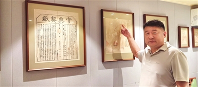 走进晋庭小院的包间,墙上挂着一张张极具年代感的“地契”,彰显着店主的身份。44岁的雷天恩,从平遥到太原闯荡已经20多年,口音依然有浓重的家乡味。他是日昇昌票号创始人雷履泰的第六世孙,这些“地契”是家人世代珍藏,延续至他手中。将之装饰在店里,是雷天恩对晋商精神的传承和延续。如今的他,在太原涉足餐饮、物流、商贸等多领域,发展态势良好。