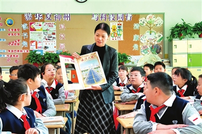 10月9日,迎泽区双西小学四年四班的老师利用太原日报社推出的国庆专刊《太原晚报·三晋第一街》,向学生介绍迎泽大街的历史,感受家乡深厚文化底蕴。 牛利敏 耿婧媛 摄影报道